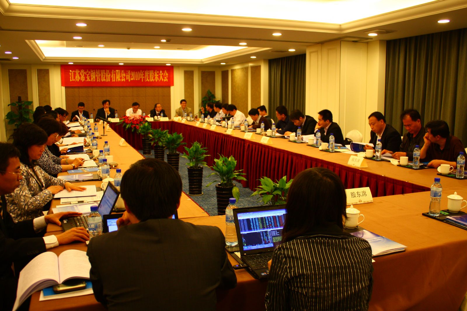 公司2010 年度股東大會于2011年5月5日上午9時在常州市富都戴斯大酒店二樓會議室采取現(xiàn)場書面投票方式召開,出席會議股東及股東書面授權(quán)委托代表人共26 名,代表公司股份數(shù)量309,441,109 股,占公司有表決權(quán)股份總數(shù)比例為77.34%。會議由董事會召集,公司董事、監(jiān)事、高級管理人員、保薦代表人列席了本次會議。會議由董事長曹堅(jiān)先生主持,公司聘請了國浩律師集團(tuán)上海事務(wù)所方杰律師、仇如愚律師對本次大會進(jìn)行見證。